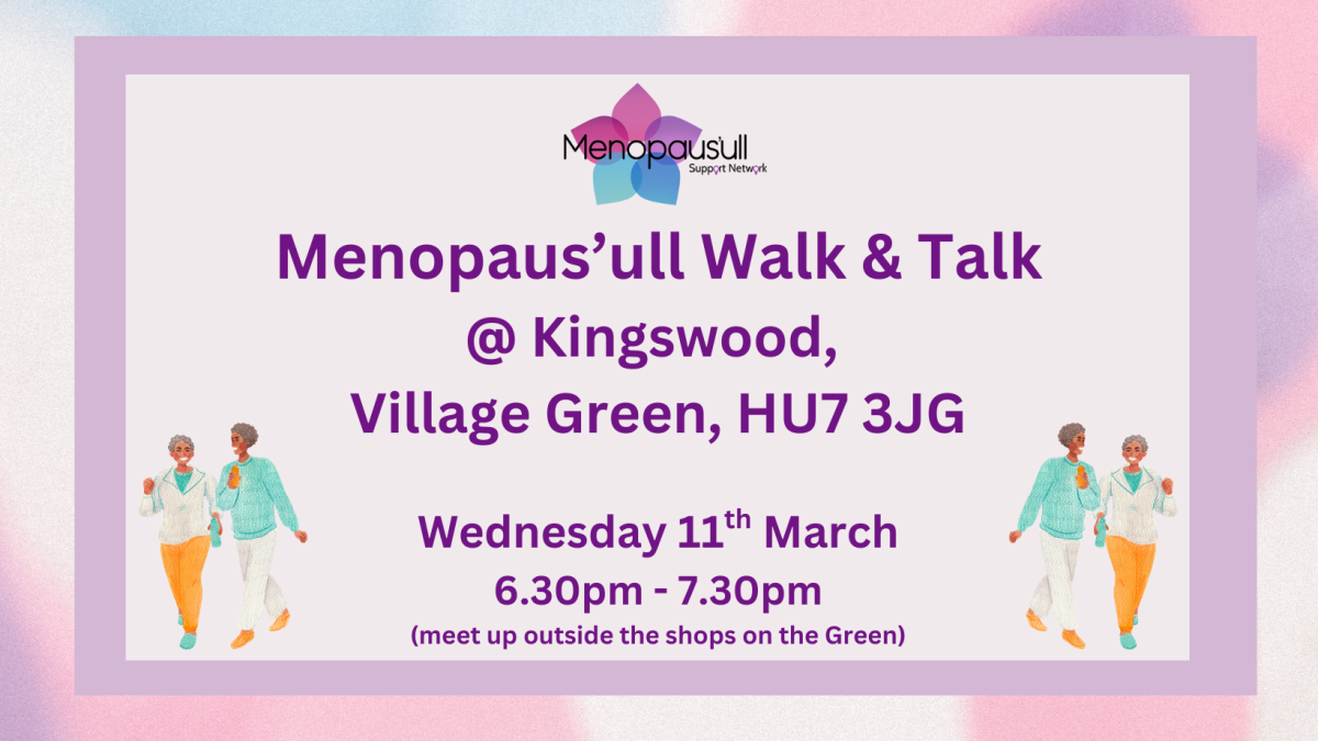 Join us at another new destination on Kingswood for one of our Menopaus’ull Walk & Talk sessions which will be taking place on Wednesday 11th March at 6.30pm.
